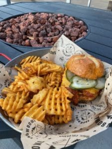 Grilled Home Ranch Wagyu patty with shaved smoked try-tip, chipotle BBQ sauce, coleslaw and fried crispy onions. Served on Texas toast.