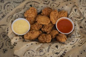 1lb. of bone-in or boneless wings - naked, dry rubbed or tossed in wing sauce, served with carrots, celery and your choice of ranch or bleu cheese dressing.